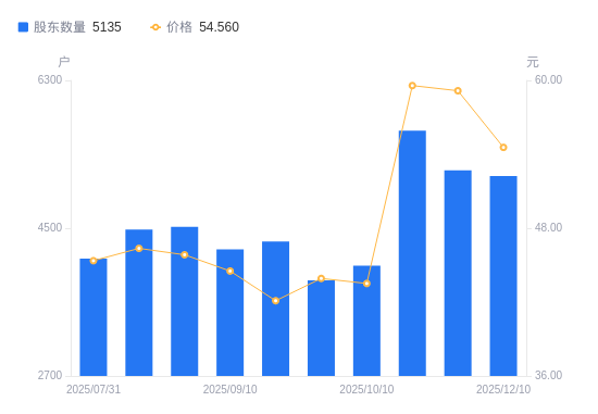 近一年(2024年12月10日至2025年12月10日),天益医疗A股股东户数从3378户,增加至5135户,增幅52.01%,区间股价上涨23.55%。