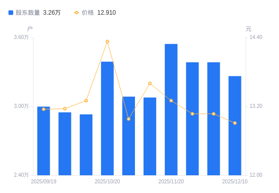 近一年(2024年12月10日至2025年12月10日),奥特迅A股股东户数从3.35万户,减低至3.26万户,降幅2.61%,区间股价上涨10.34%。