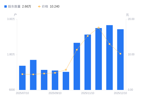 近一年(2024年12月31日至2025年12月10日),*ST东易A股股东户数从2.42万户,增加至2.66万户,增幅9.76%,区间股价上涨146.75%。