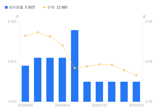 近一年(2024年12月31日至2025年11月20日),ST绝味A股股东户数从5.06万户,减低至5万户,降幅1.15%,区间股价下跌16.71%。