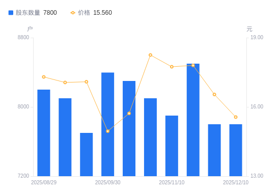 近一年(2024年12月10日至2025年12月10日),中胤时尚A股股东户数从1.18万户,减低至7800户,降幅33.90%,区间股价上涨30.10%。