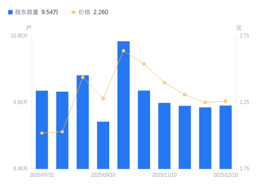 近一年(2024年12月10日至2025年12月10日),利源股份A股股东户数从15.4万户,减低至9.54万户,降幅38.04%,区间股价下跌3.00%。