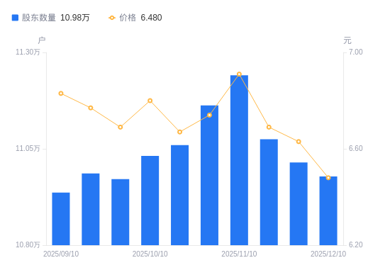近一年(2024年12月10日至2025年12月10日),上海莱士A股股东户数从9.59万户,增加至10.98万户,增幅14.49%,区间股价下跌12.99%。