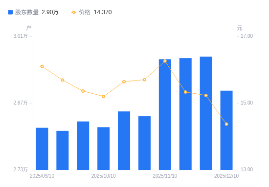 近一年(2024年12月10日至2025年12月10日),冠昊生物A股股东户数从2.96万户,减低至2.9万户,降幅2.20%,区间股价上涨7.40%。