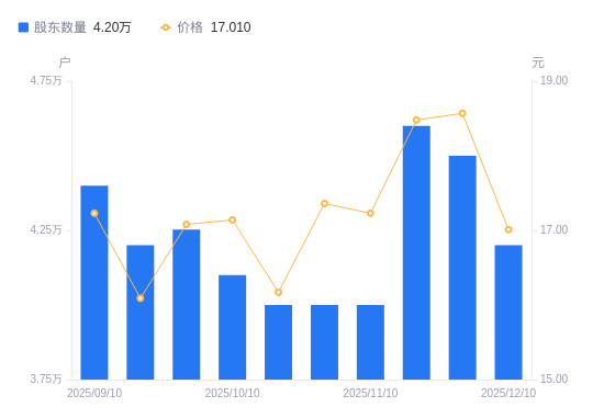 近一年(2024年12月20日至2025年12月10日),超图软件A股股东户数从4.54万户,减低至4.2万户,降幅7.49%,区间股价下跌7.55%。