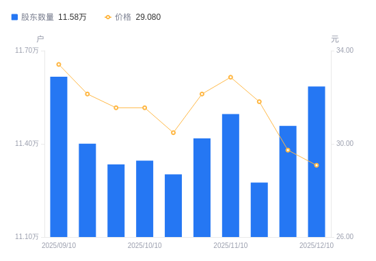 近一年(2024年12月10日至2025年12月10日),金龙鱼A股股东户数从12.67万户,减低至11.58万户,降幅8.56%,区间股价下跌15.31%。