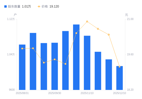 近一年(2024年12月10日至2025年12月10日),东亚药业A股股东户数从1.13万户,减低至1.01万户,降幅10.65%,区间股价下跌2.70%。