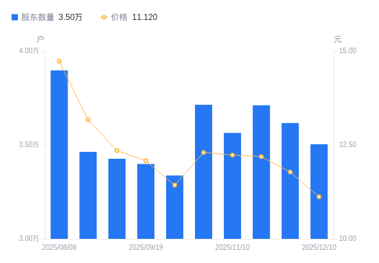 近一年(2024年12月10日至2025年12月10日),赛升药业A股股东户数从2.71万户,增加至3.5万户,增幅29.32%,区间股价上涨34.14%。