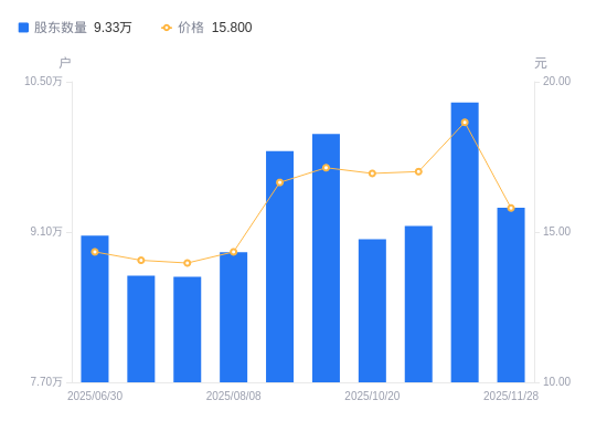 近一年(2024年12月10日至2025年12月10日),大港股份A股股东户数从10.51万户,减低至9.19万户,降幅12.56%,区间股价下跌2.81%。