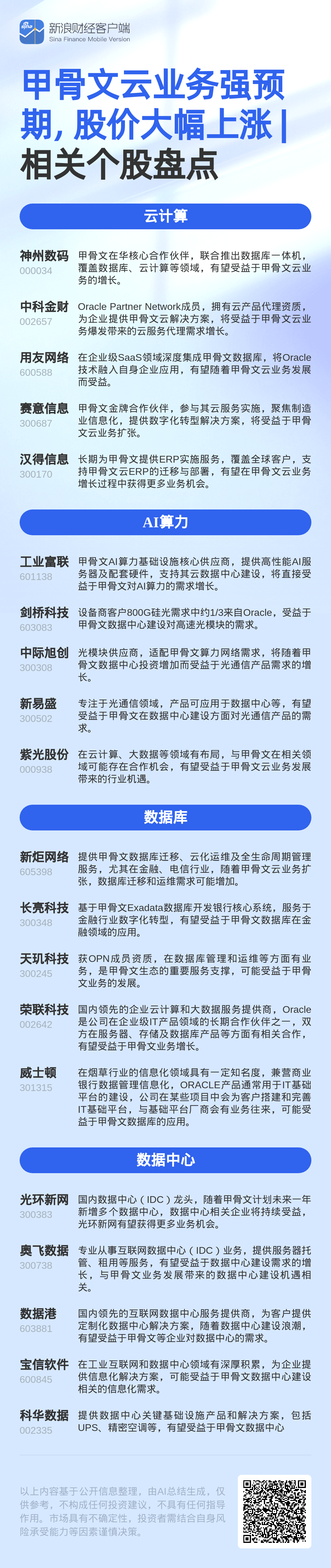 甲骨文预计2026财年云基础设施收入同比增77%达180亿美元,后续四年还将大幅增长。9月10日,A股AI产业链股上涨。海内外AI落地值得期待,国内AI产业链环节或被低估。