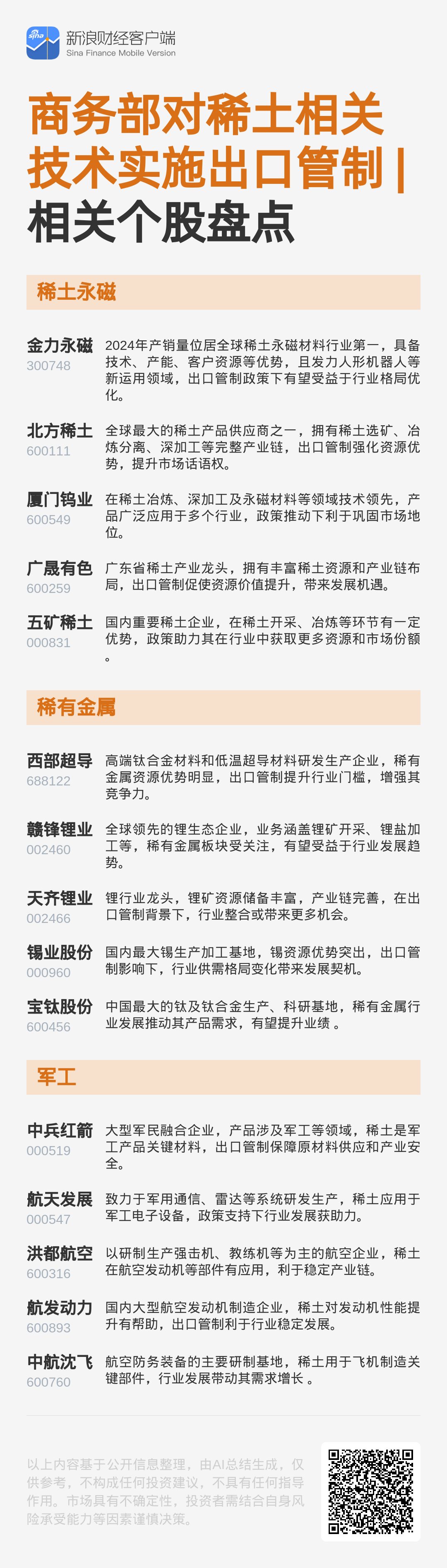 10月9日,商务部发布公告(2025第62号),决定对稀土相关技术等物项实施出口管制。