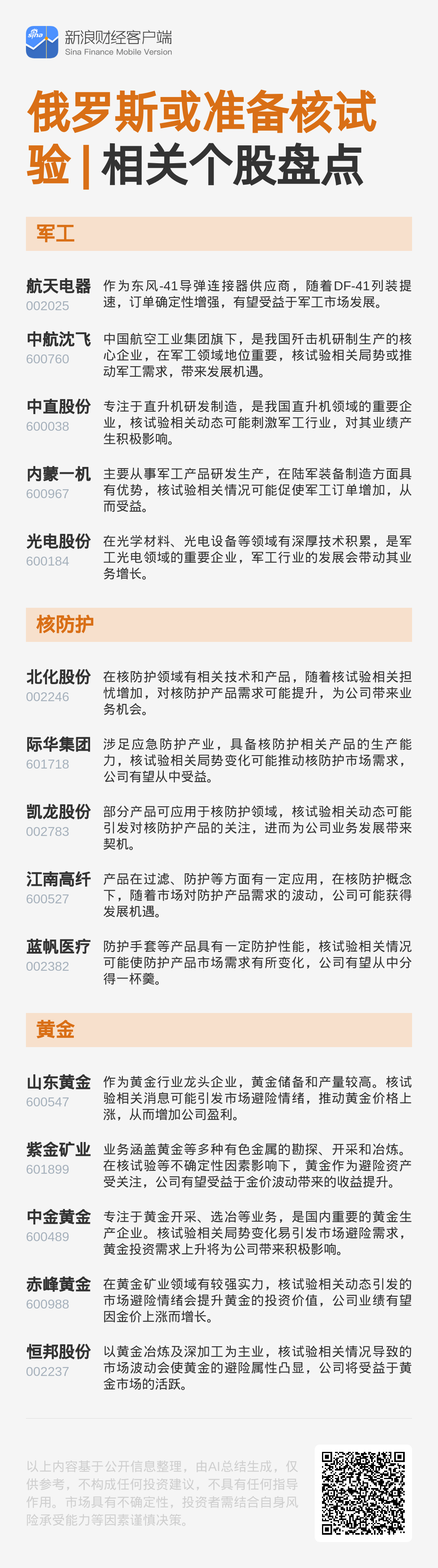 声明:市场有风险,投资需谨慎。本文为AI大模型基于第三方数据库自动发布,任何在本文出现的信息(包括但不限于个股、评论、预测、图表、指标、理论、任何形式的表述等)均只作为参考,不构成个人投资建议。受限于第三方数据库质量等问题,我们无法对数据的真实性及完整性进行分辨或核验,因此本文内容可能出现不准确、不完整、误导性的内容或信息,具体以公司公告为准。如有疑问,请联系biz@staff.sina.com.cn。