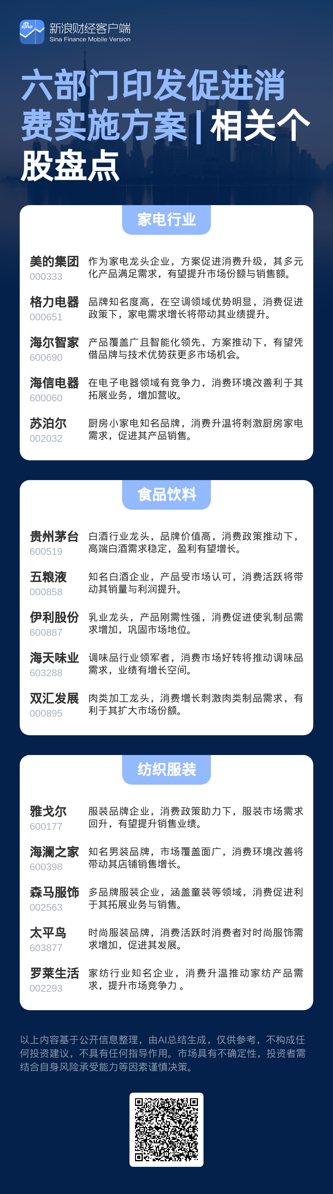11月26日消息,工业和信息化部等六部门印发《关于增强消费品供需适配性进一步促进消费的实施方案》。