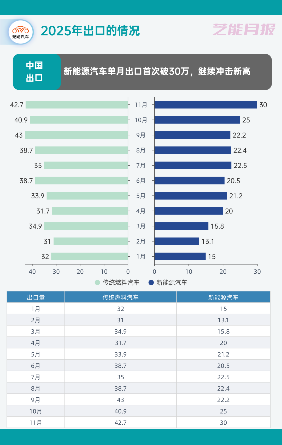 2025年的中国汽车出口,进入“规模+结构”双增长阶段,规模新高首次突破70万辆,全年将稳超700万。插混成为新的增长引擎,纯电稳步扩大体量。奇瑞稳、比亚迪涨、上汽强,多家车企形成合力推动出口突破。中国汽车行业在国内赢了,也在全球拿到更大的市场,出口赚钱!