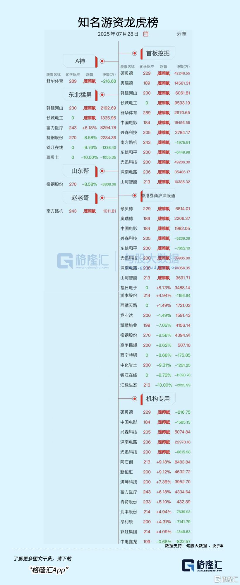 成都系:净买入硕贝德、奥瑞德、福日电子,分别为8085万元、5158万元、3966万元,净卖出阿石创4507万元