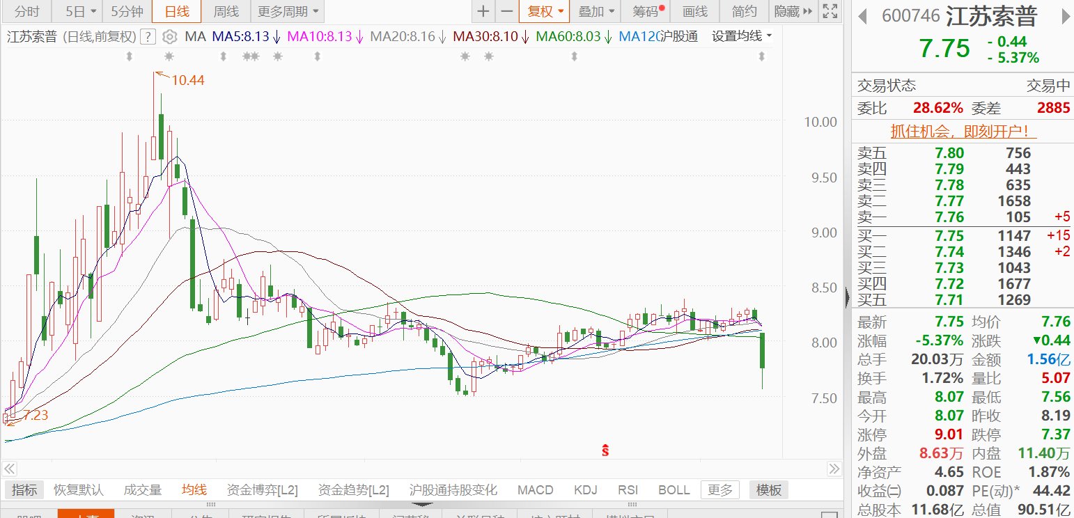 格隆汇8月13日|江苏索普(600746.SH)跌5.37%,报7.75元,总市值90.51亿元。江苏索普公告,2025年上半年营业收入31.58亿元,同比下降1.08%;净利润1.02亿元,同比下降13.01%。公司不进行半年度利润分配或资本公积金转增股本。