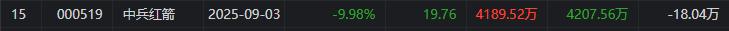 中兵红箭:今日跌停,全天换手率6.59%,成交额18.84亿元。机构净卖出2364.15万元,深股通净卖出18.03万元,营业部席位合计净卖出1911.81万元。