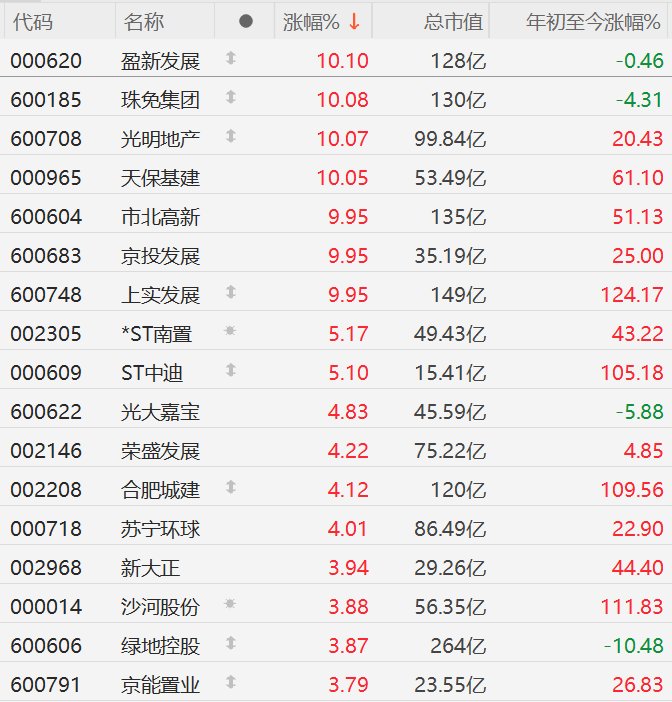 格隆汇10月22日|A股市场房地产股逆势上涨,其中,盈新发展(维权)、珠免集团(维权)、光明地产、天保基建、市北高新、京投发展、上实发展涨停,光大嘉宝、荣盛发展、合肥城建、苏宁环球涨超4%。消息面上,上海市人民政府办公厅日前印发《上海市促进建筑业高质量发展 加快培育增长新动能行动方案》的通知。通知提出,稳定房地产投资规模,筑牢上海建筑市场基本盘。推动“好房子”建设,为好设计、好建造、好服务提供应用场景。