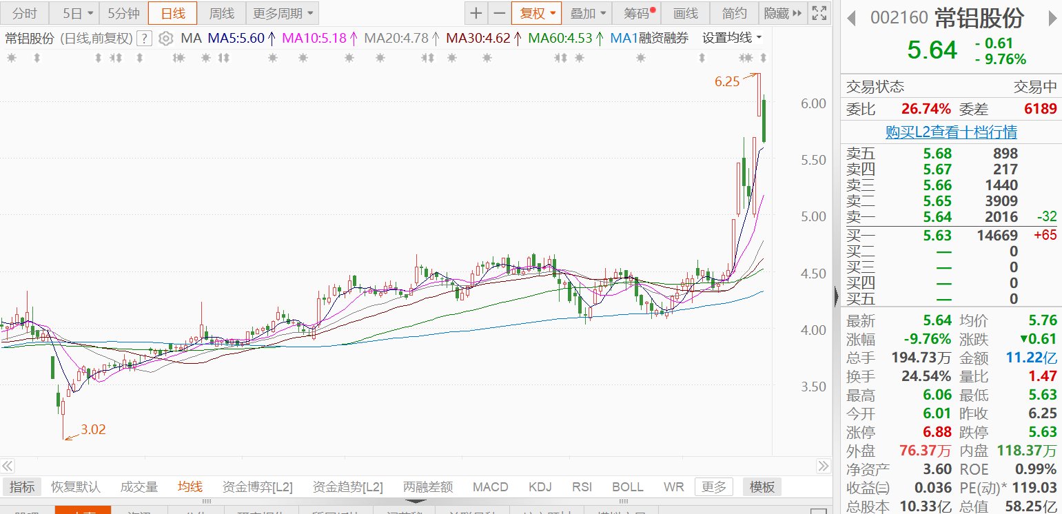此前6天4板涨停的常铝股份(002160.SZ)今日跌9.76%,报5.74元,成交额11.22亿元,总市值58.25亿元。常铝股份发布2025年第三季度报告,第三季度营收为20.16亿元,同比增长2.64%;净利润为1040.21万元,同比下降47.15%。前三季度营收为61.72亿元,同比增长9.79%;净利润为3670.16万元,同比下降28.54%。业绩下滑主要系计提存货跌价准备及信用减值损失增加所致。(格隆汇)