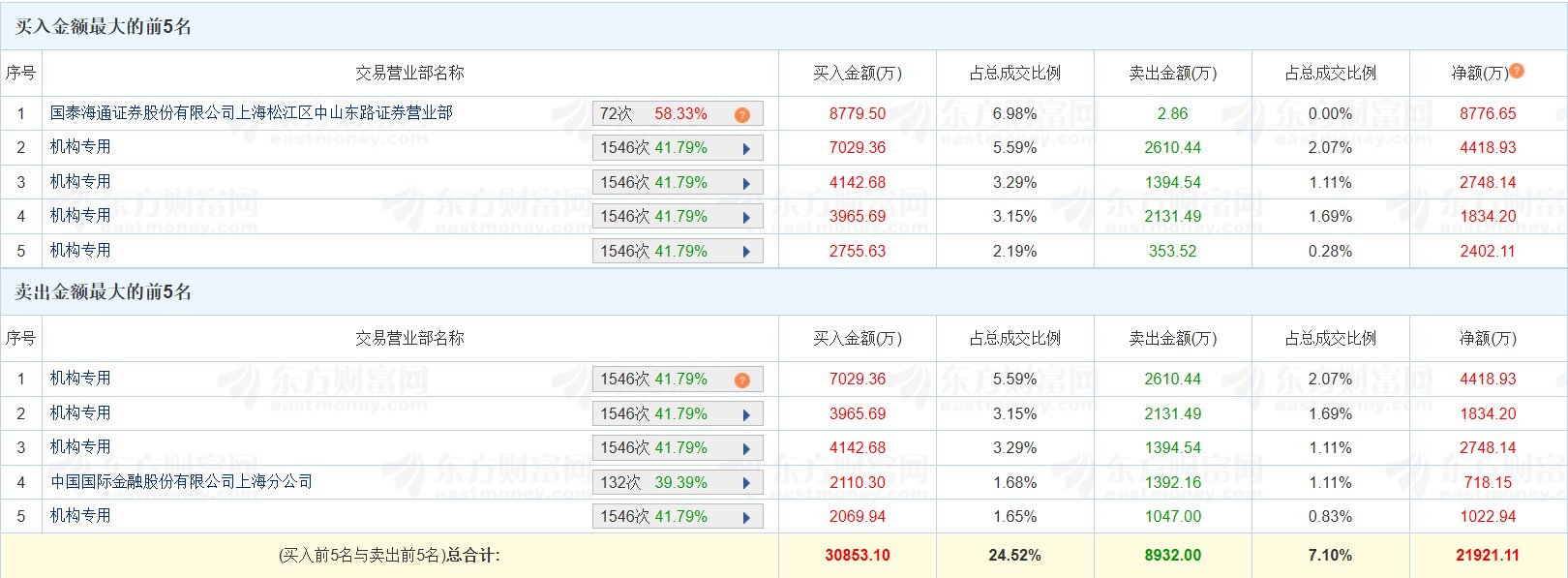 中能电气(300062.SZ)今日20CM涨停,换手率27.68%,成交额12.58亿元。龙虎榜数据显示,五家机构买入2亿元,卖出7537万元,净买入1.24亿元;游资“中山东路”位列买一席位,净买入8777万元;“量化基金”位列卖四席位,净卖出718万元。上榜席位全天买入3.09亿元,卖出8932万元,合计净买入2.19亿元。(格隆汇)
