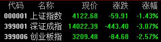 3月3日,A股三大指数集体下挫,截至收盘,沪指跌1.43%报4122点,深证成指跌3.07%,创业板指跌2.57%。全市场成交额3.16万亿元,较前一交易日增量1118亿元,超4800股下跌。