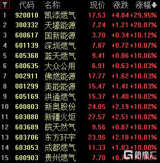 燃气板块走高,凯添燃气、天壕能源、国新能源、神燃气等多股涨停。
