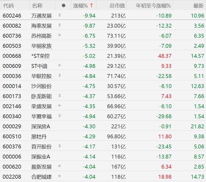 格隆汇3月3日|A股房地产股集体下挫,其中,万通发展(维权)触及跌停,海泰发展(维权)逼近跌停,苏州高新跌超6%,华丽家族跌超5%,华联控股、沙河股份、卧龙新能、荣盛发展、华夏幸福、深深房A、黑牡丹(维权)、深振业A跌超4%。