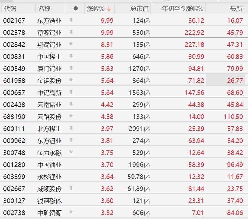 格隆汇3月4日|A股市场稀有金属板块走强,其中,东方锆业、章源钨业涨停,翔鹭钨业涨超8%,中国稀土、厦门钨业、金钼股份、中钨高新涨超5%,云南锗业、云路股份涨超4%,北方稀土、金力永磁、中国铀业、永杉锂业、威领股份、银河磁体、中矿资源涨超3%。