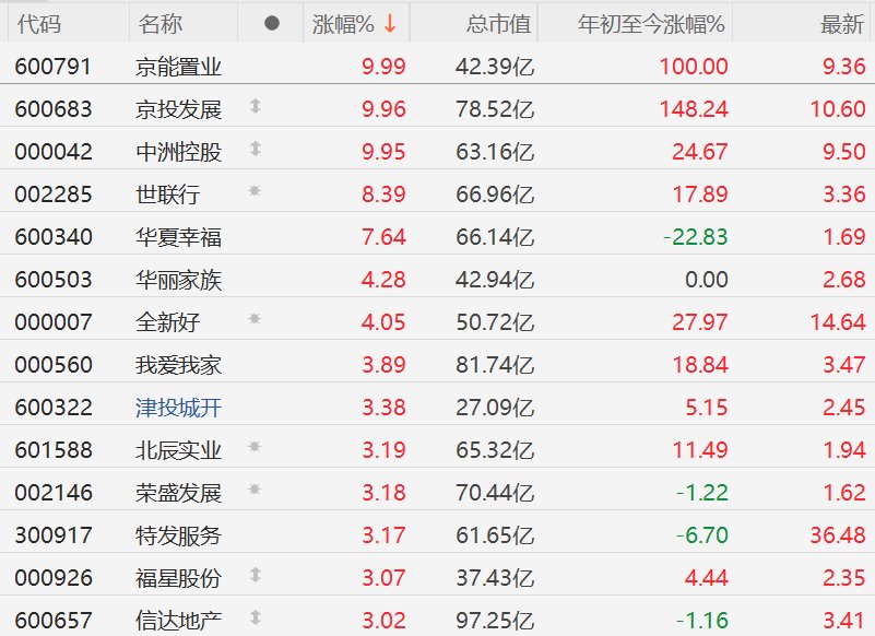 格隆汇3月17日|A股市场地产股活跃,其中,京能置业、京投发展、中洲控股10CM涨停,世联行涨超8%,华夏幸福涨超7%,华丽家族、全新好涨超4%,我爱我家、津投城开、北辰实业、荣盛发展、特发服务、福星股份、信达地产涨超3%。消息面上,上海宣布自2026年3月16日起,商业用房购房贷款最低首付款比例下调至不低于30%。