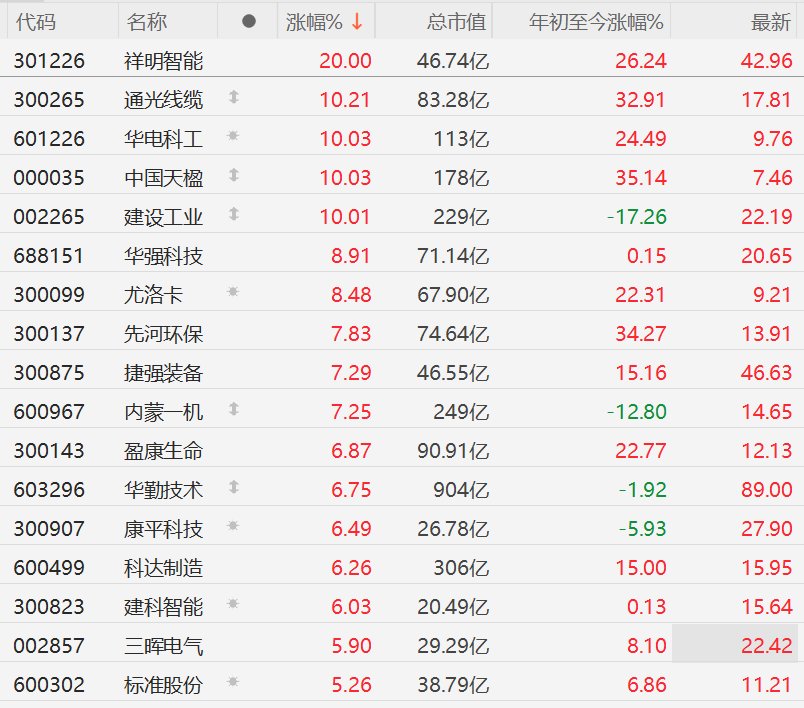 格隆汇3月24日|A股市场机器人概念股集体上涨,其中,祥明智能20CM涨停,通光线缆涨超10%,华电科工、中国天楹、建设工业10CM涨停,华强科技、尤洛卡涨超8%,先河环保(维权)、捷强装备、内蒙一机涨超7%,盈康生命、华勤技术、康平科技、科达制造、建科智能涨超6%。