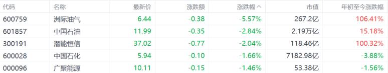 油改概念走低,洲际油气跌超5%,中国石油跌超2%,中国石化、广聚能源跟跌。消息面上,美伊局势反复搅动市场,国金证券发布研报称,不论是考虑此次战争带来的经济索赔的出处,还是战争方以及周边国家的连带供给、运输能力的损失,油气价格维持高位预估将大概率持续,对于化工的影响很难短时间消除,预估持续影响时间将明显拉长。