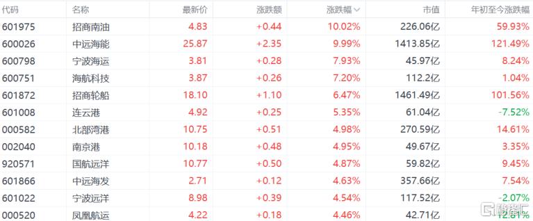 航运港口股走强,招商南油、中远海能涨停,宁波海运、海航科技涨超7%,招商轮船涨超6%。华泰证券认为,市场对全球能源及贸易供应链中断的担忧持续加剧,战争风险溢价持续释放,油运、集运、散货各板块运价或将迎来大幅跳涨。油运方面,伊朗禁止船舶通过霍尔木兹海峡,供应链中断风险推升运价;集运方面,市场预期反转,中东/红海航线双扰动,运价有望大幅反弹。
