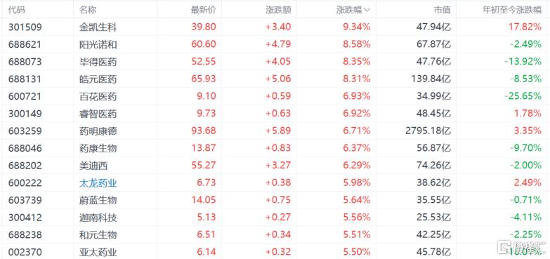 CRO、医疗服务走强,金凯生物涨超9%,阳光诺和、皓元医药涨超8%,药明康德、药康生物涨超6%。个股消息面上,药明康德2025年归母净利润为191.95亿元,同比增长105.2%。