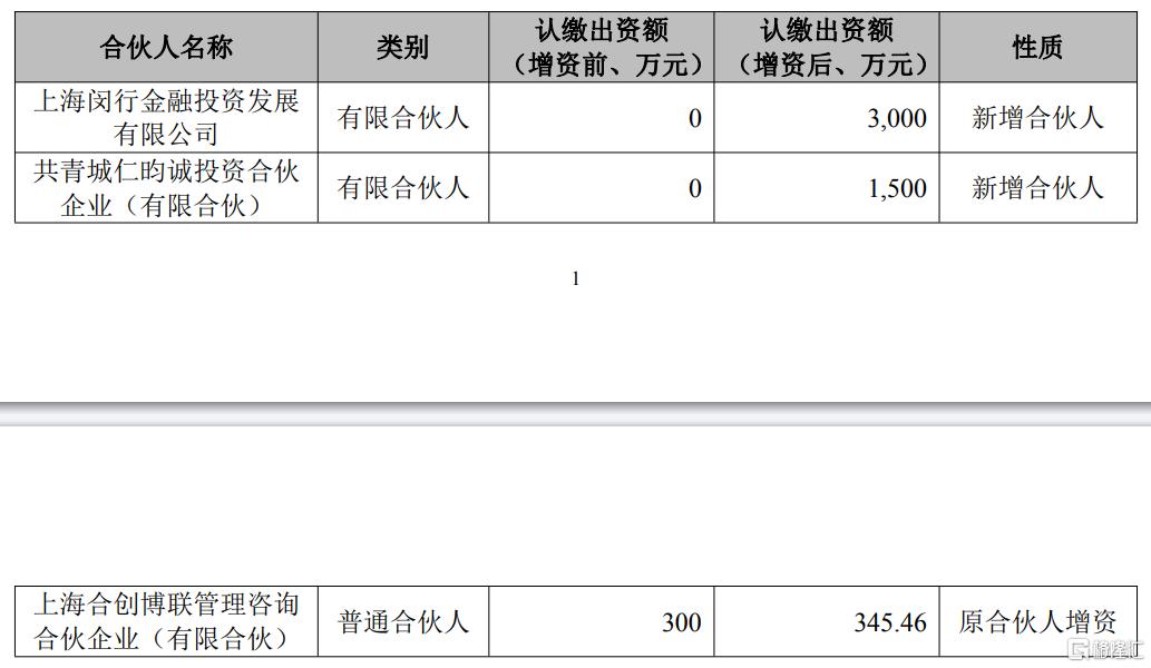 为进一步增强基金资本实力、优化治理结构,经全体合伙人一致同意,对基金进行扩募增资及新增合伙人并重新签订《上海德联博健创业投资合伙企业(有限合伙)合伙协议》。本次扩募增资公司未追加投资,因基金募集总规模拟增加至34,545.46万元,公司占有基金份额由29%变更为25.18%。