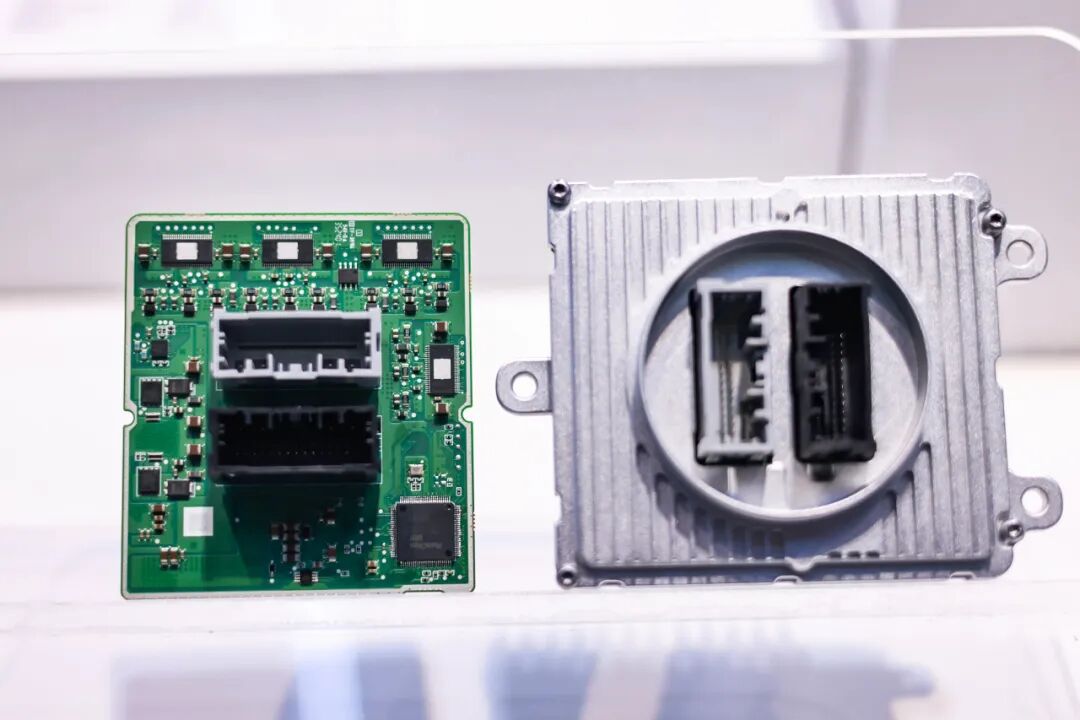 (图片来源:ALE咨询平台)公司分区域展示了车用照明控制模块、预研智能照明产品、光学结构件三大系列产品。车用照明控制模块实现了多通道全规格覆盖,供电与输出灵活,适配不同整车需求,集成CAN/CAN FD/LIN通讯、ADB、动画流水等功能,兼具高可靠性与成本优势。