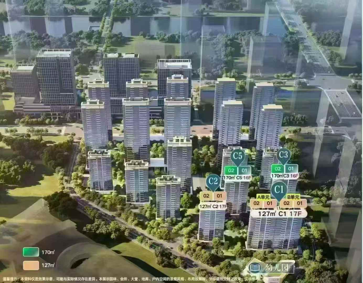 保利天奕曦苑,只规划了150户,主力户型为建面约127㎡和170㎡,层高16-17层,南向板楼设计,两梯两户。