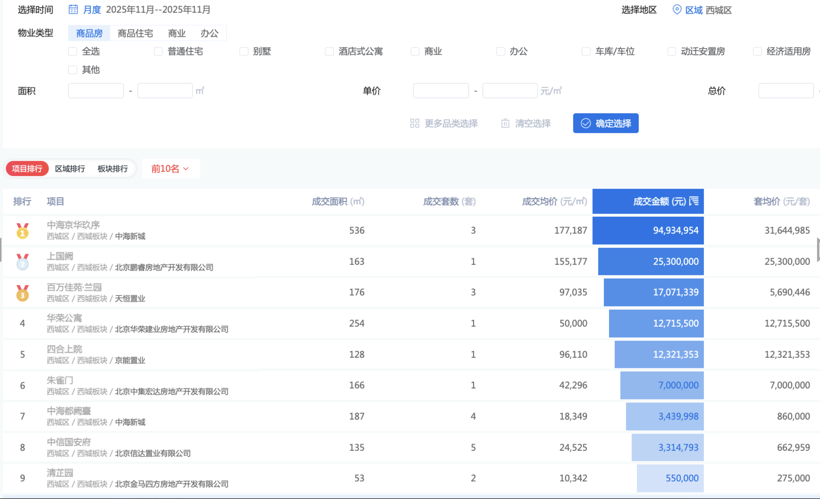北京进深 徐迪 12月1日,北京11月住宅成交榜出炉。