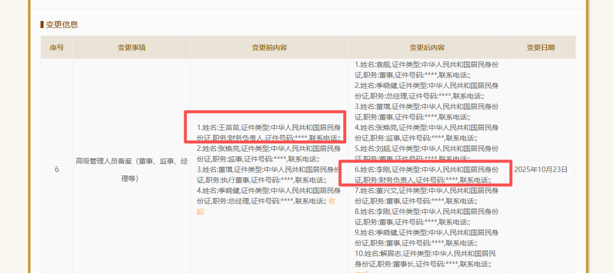 值得关注的是,2025年10月23日,海尔新能源财务负责人由王苗苗变更为李刚。