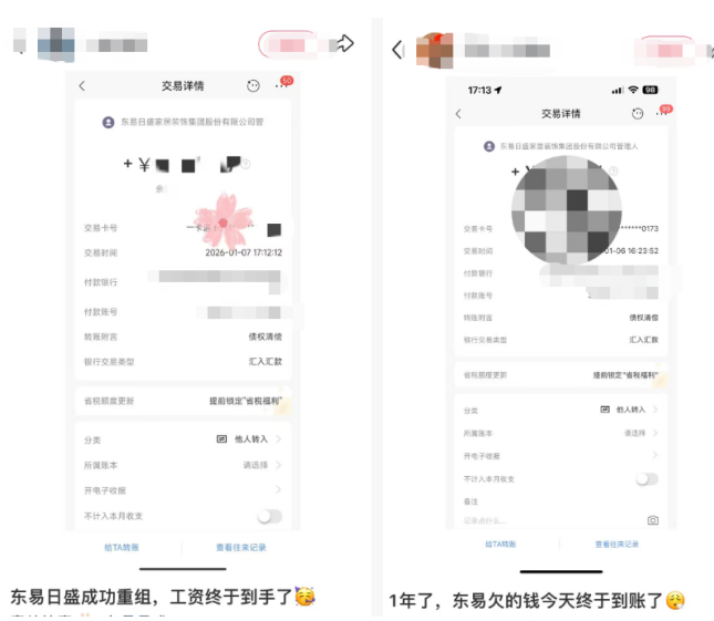 1月8日,据部分员工在社交平台透露,东易日盛近日已向员工补发了此前拖欠的薪酬。有员工对此感慨称,“这一路的风雨和坚守,终究没被辜负”。