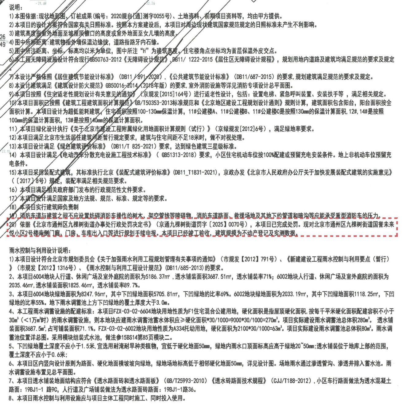 根据总图说明,依据《北京市通州区九棵树街道办事处行政处罚决定书》(京通九棵树街道罚字【2025】0070号),本项目已完成处罚。