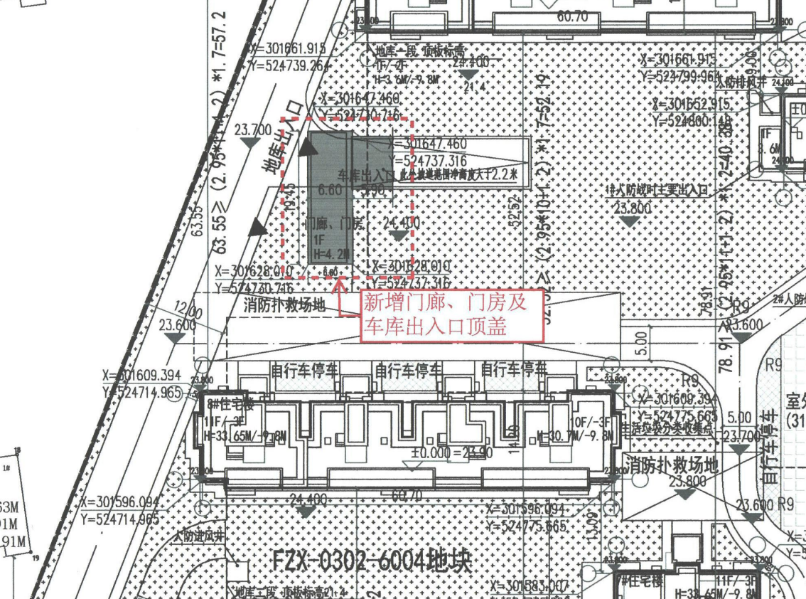 现对国誉未来悦小区2号楼南侧门廊、门房、车库出入口等进行规划手续申报。