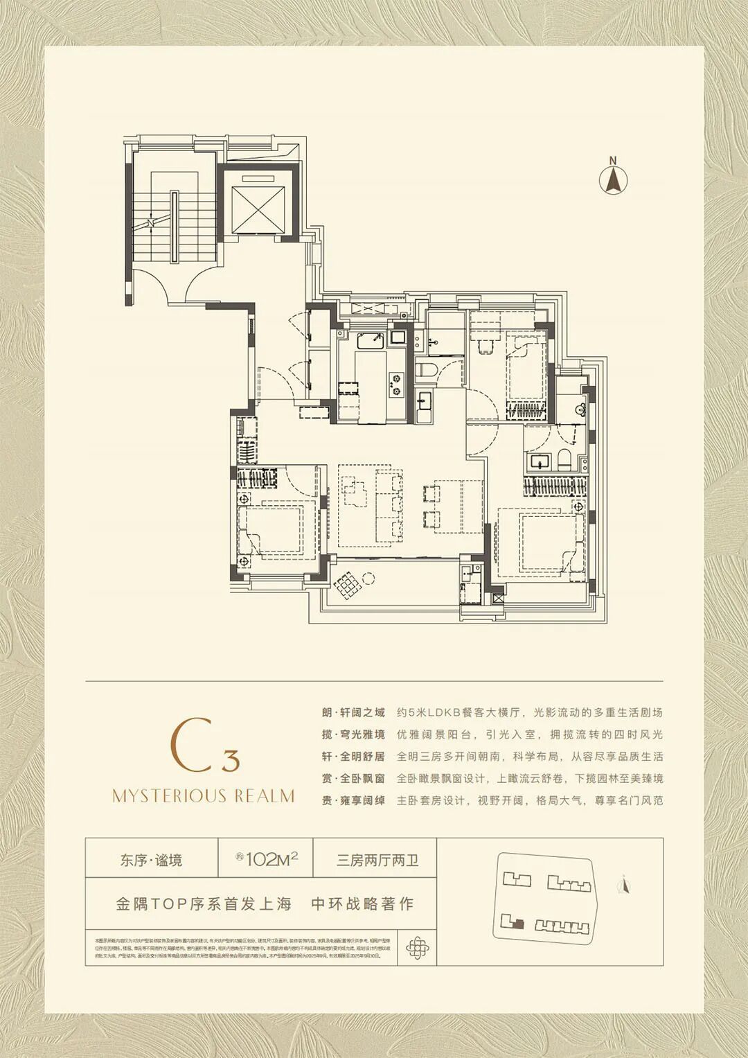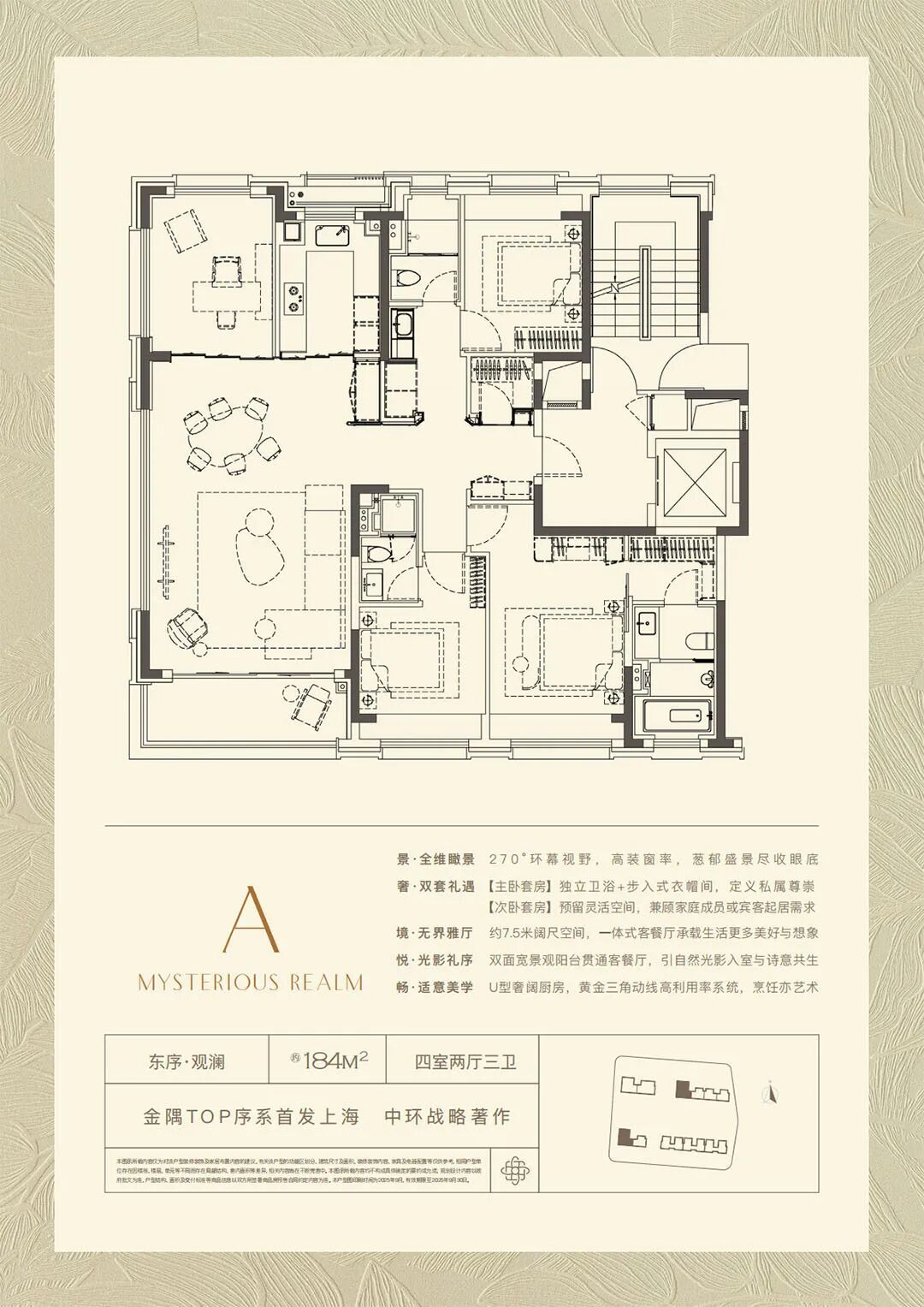 取境宝格丽级美学灵感,传承海派优雅腔调。演绎海派经典ARTDECO新装饰主义风格,在不同面积段户型内,采用全明户型、LDKB一体化行政级会客厅、落地窗景等设计手法,在全景视野之下融合更多会客功能,让人居不止住家。
