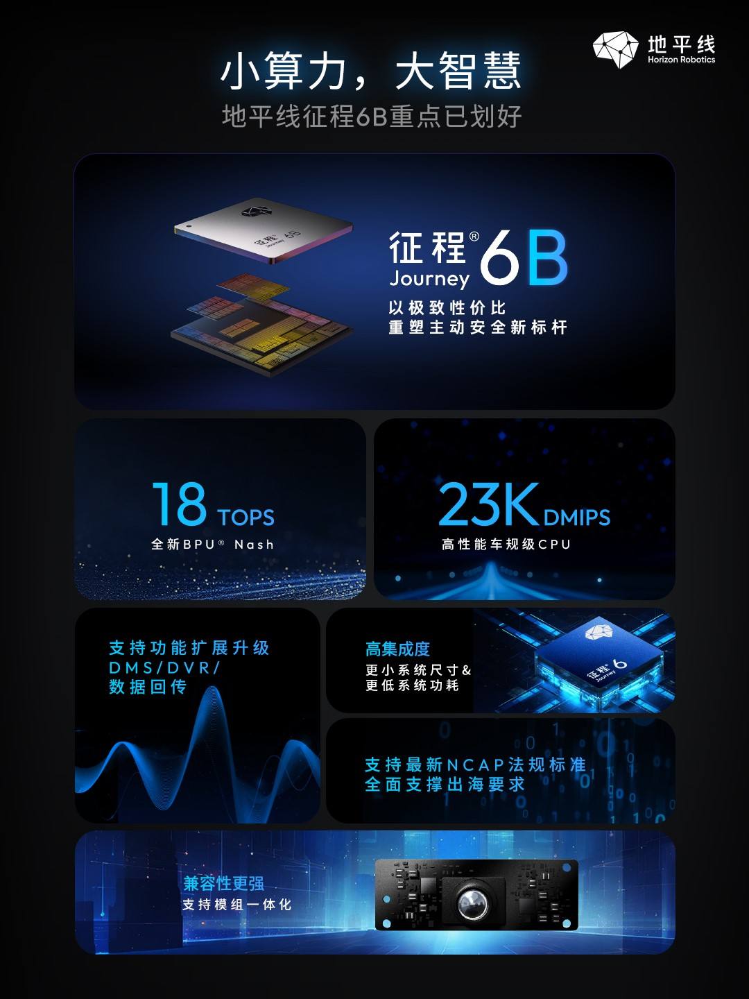 早在2025年7月,征程®6B已实现一次性成功点亮,标志着地平线征程®6系列全阶通关成熟,为全民智驾提供了高效可靠的计算基座。无论是博世第四代多功能智能驾驶解决方案,还是鉴智机器人PhiGo Entry方案,都依托征程®6B的硬核算力,实现了功能与成本的完美平衡。