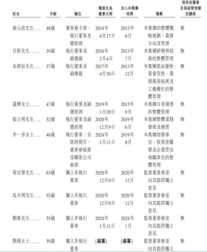 董事会由十名董事组成,包括六名执行董事及四名独立非执行董事。董事任期三年及任期届满可重选连任。
