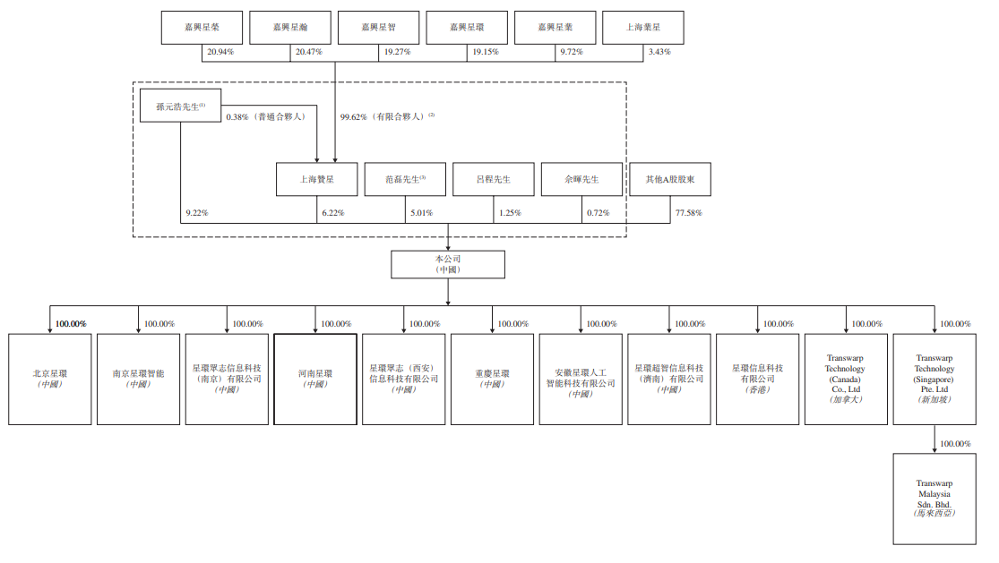 孙元浩先生、吕程先生、范磊先生、佘晖先生及上海赞星订立一致行动协议,以承认并确认彼等于公司的一致行动关系。截至最后实际可行日期,孙元浩先生作为上海赞星的普通合伙人直接持有其约0.38%的合伙权益。嘉兴星荣、嘉兴星瀚、嘉兴星智、嘉兴星环、嘉兴星业及上海业星各为员工激励计划。上海赞星剩馀6.63%的合伙权益由嘉兴星源持有。