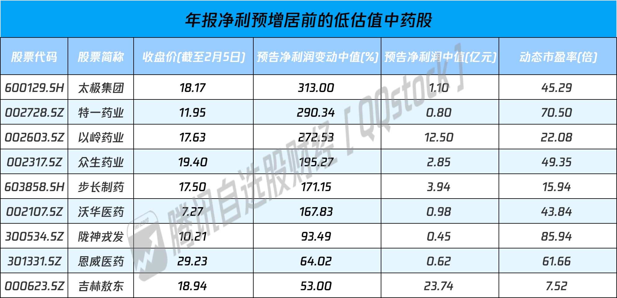 此外,自选股还梳理了年报业绩向好的低估值中药股名单,仅9只,仅供大家参考。