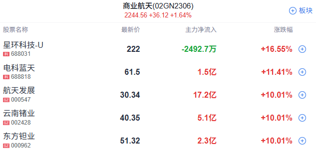 6、商业航天概念持续走高