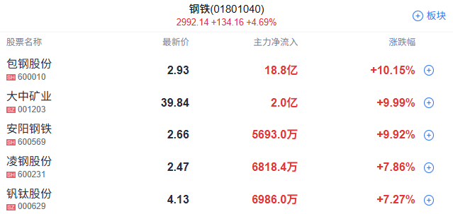钢铁股震荡走高,包钢股份、凌钢股份封板。