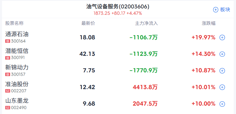 油气股开盘大涨,通源石油、中海油服、中曼石油、准油股份、石化油服、贝肯能源等多股一字涨停。