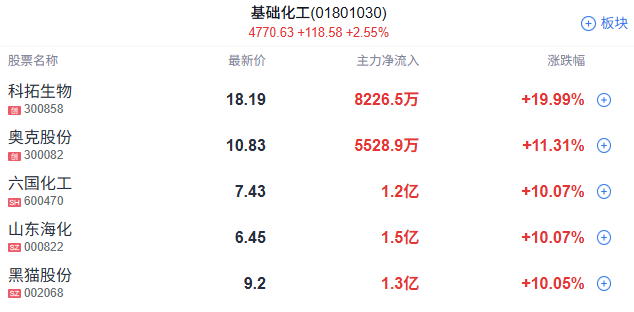 化工板块表现活跃,苏利股份、鲁北化工、金正大、金煤科技涨停。
